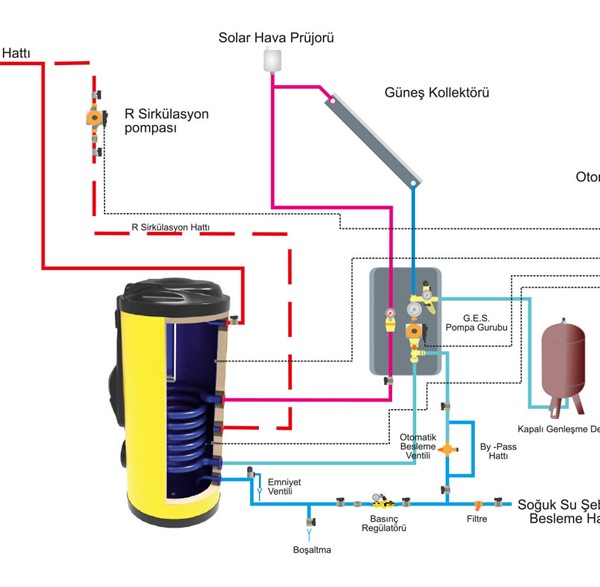 sıcak su veya buhar kazanına ya da güneş kolektörüne bağlanılarak kullanılır. |
